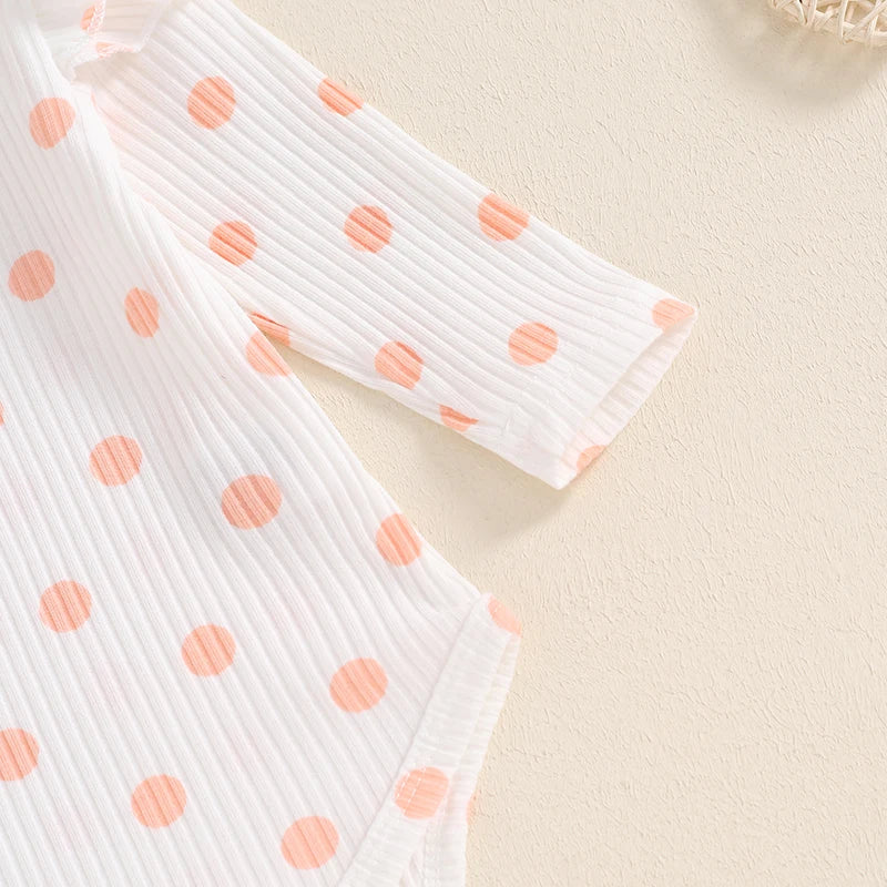 0-18M Baby Girls Fall Outfit, Long Sleeve Dots Print Romper with Pants and Bowknot Headband Clothing Set