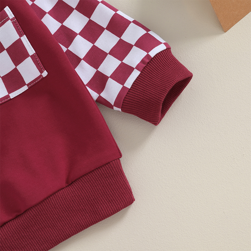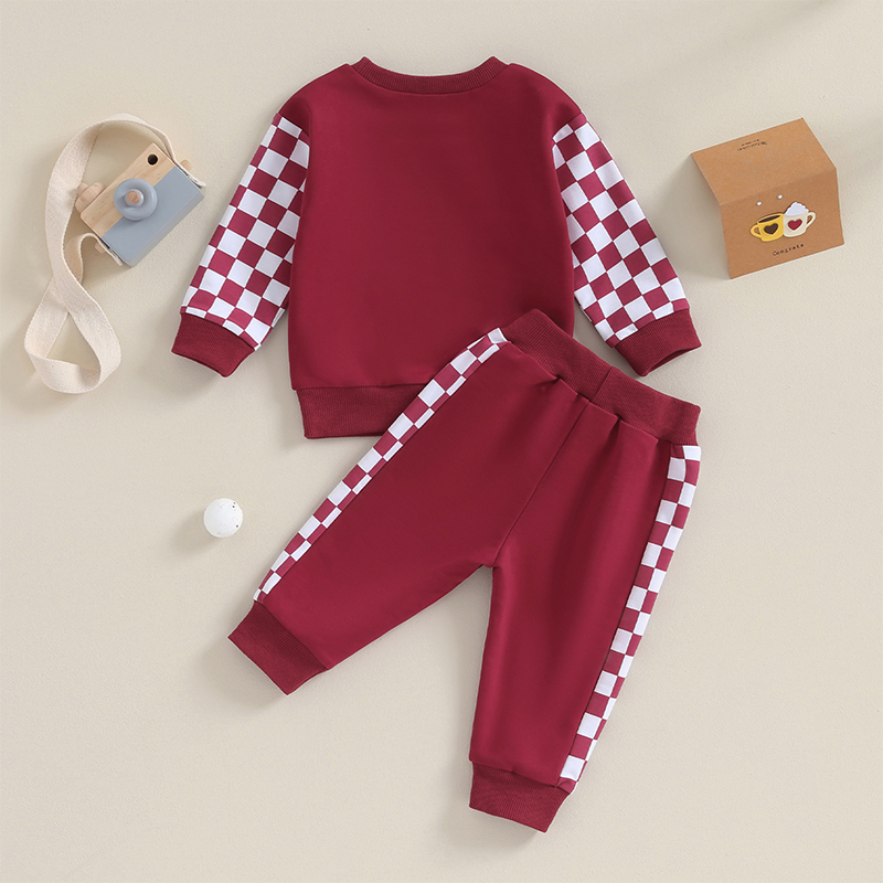 Baby Girls Boys Fall Outfits Checkerboard Print Patchwork Long Sleeve Crew Neck Sweatshirts Long Pants 2Pcs Clothes Set
