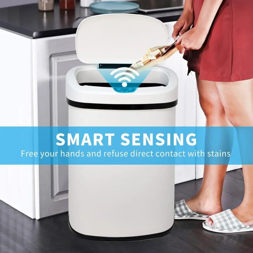 - 【Perfect Kitchen Trash Bin】The automatic trash can is space-saving oval with a capacity of 13 gallons. It is compact, but can hold a lot of trash! It's great for busy home kitchens or offices. The removable ring liner holds the garbage bag securely in place, preventing it from hanging in the air and giving a neat appearance. Any standard trash bag can be used.