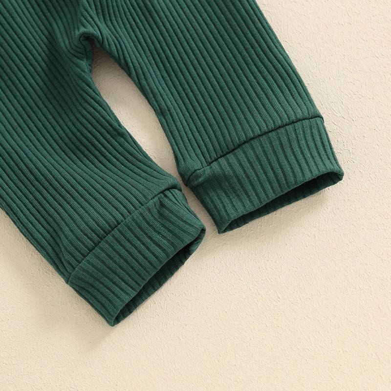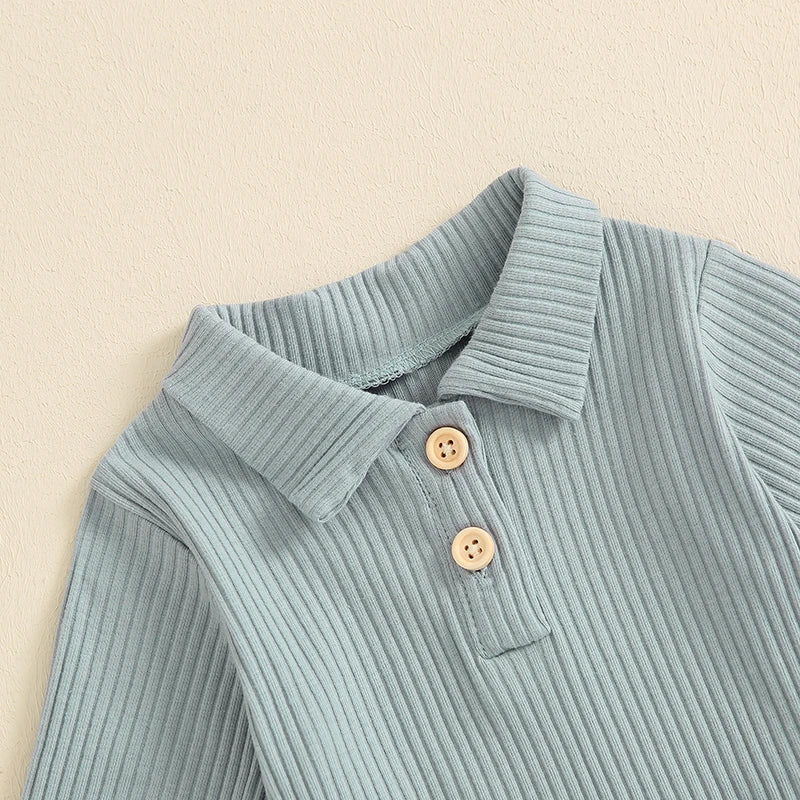 2-Piece Baby Boys Ribbed Set Button Long Sleeve Lapel Neck Romper Drawstring Pocket Long Trousers Adorable Outfits
