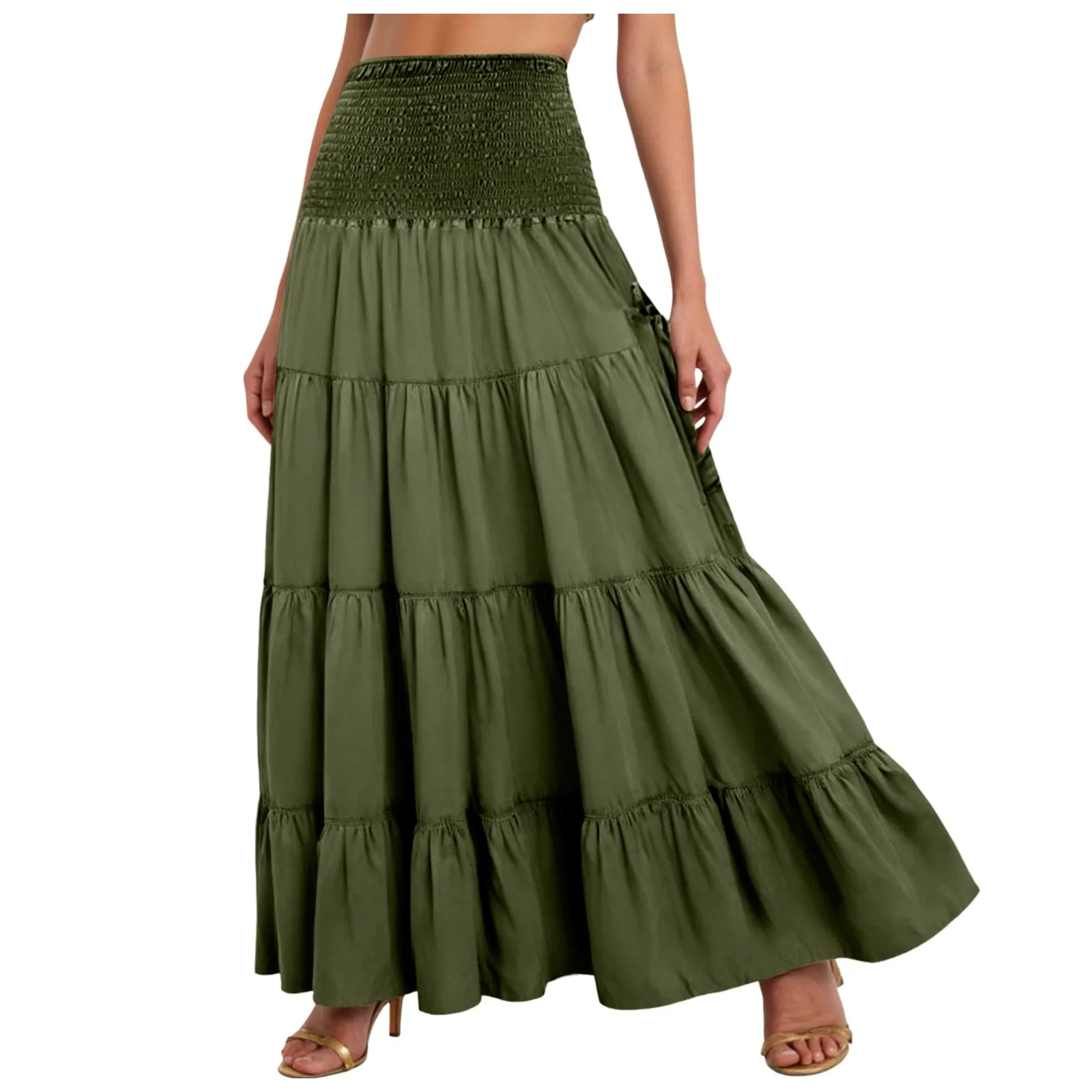 Boho Tiered A-Line Skirt, Pockets, Patchwork, Elastic Waist, Vintage Hippie/Gypsy Maxi Skirt