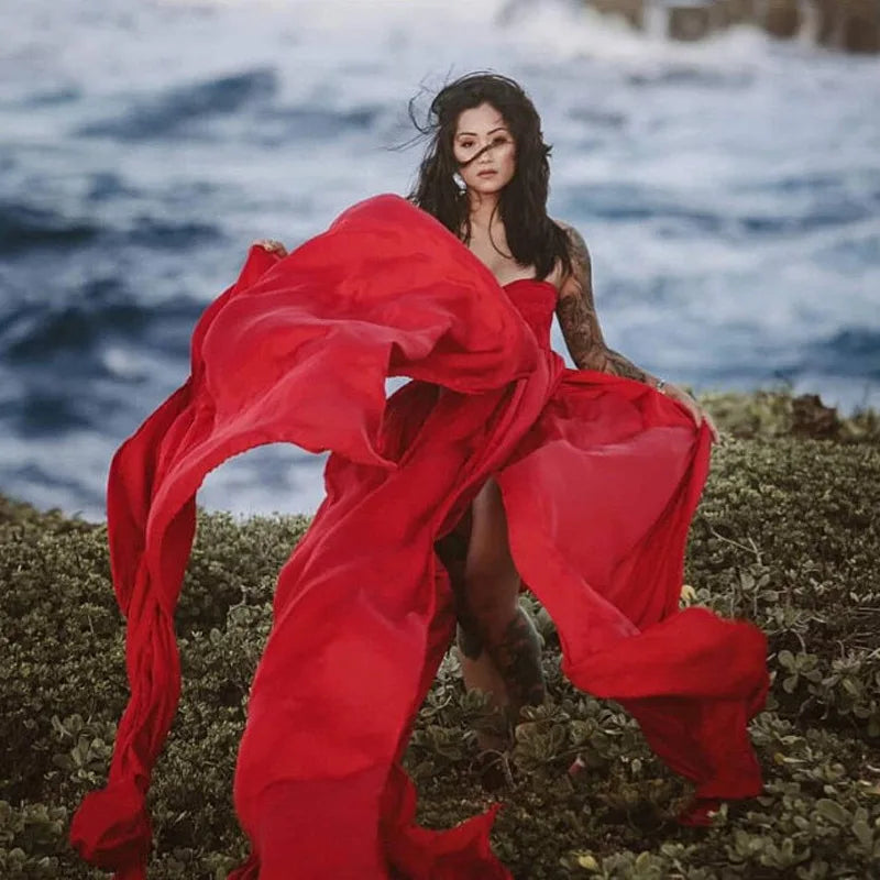Chiffon Lace Maternity Dresses For Photo Shoot, Sexy Split Front