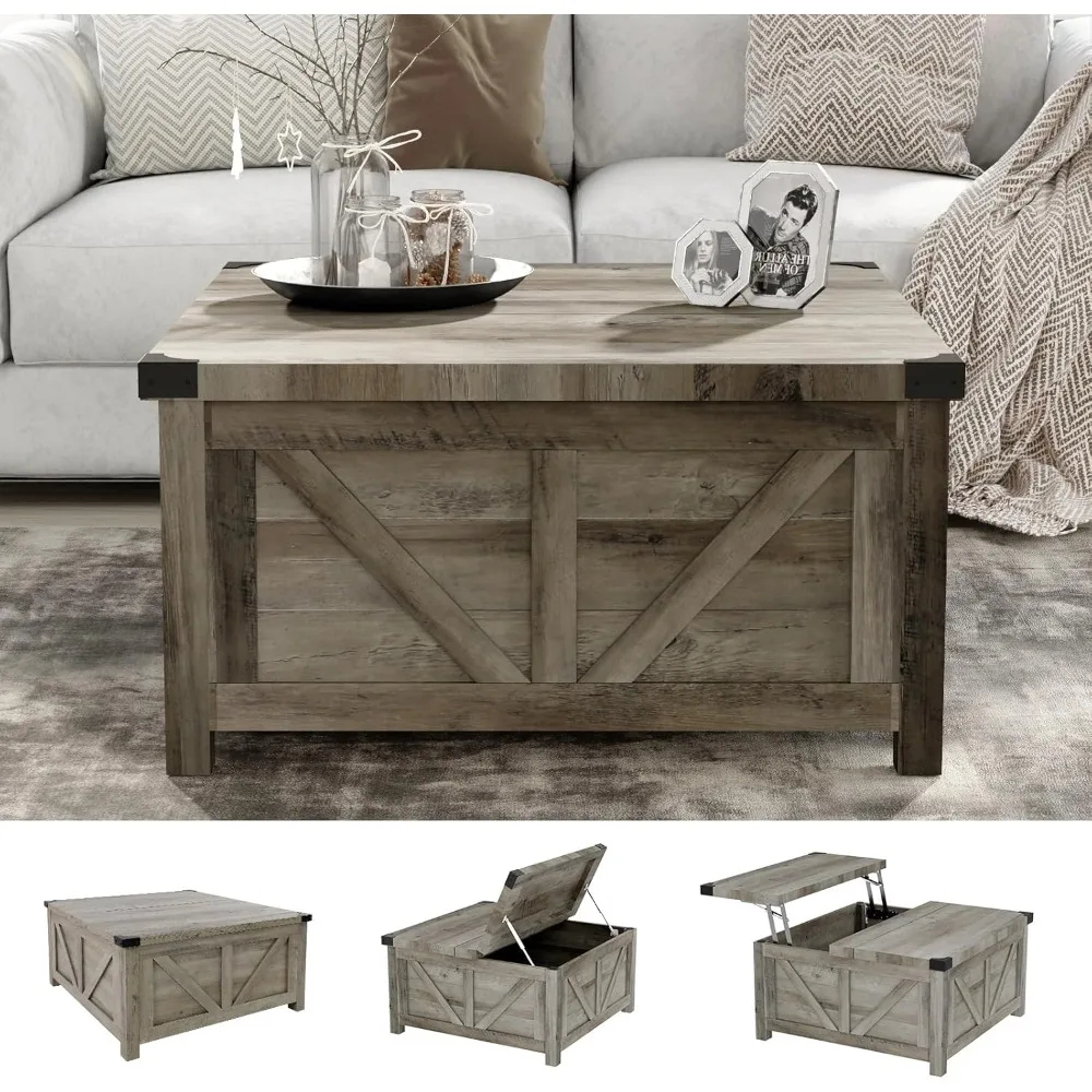 Farmhouse Charm: Our white square farmhouse lift top coffee table with storage is crafted from its original wood grain, classic farm barn shape design with metal corners decor to add a retro accent. Its farmhouse-style design complements modern, rustic, industrial, or vintage decor. The unique square shape is just the right size to not only complement your sofa well but also fit well in both small and large spaces.