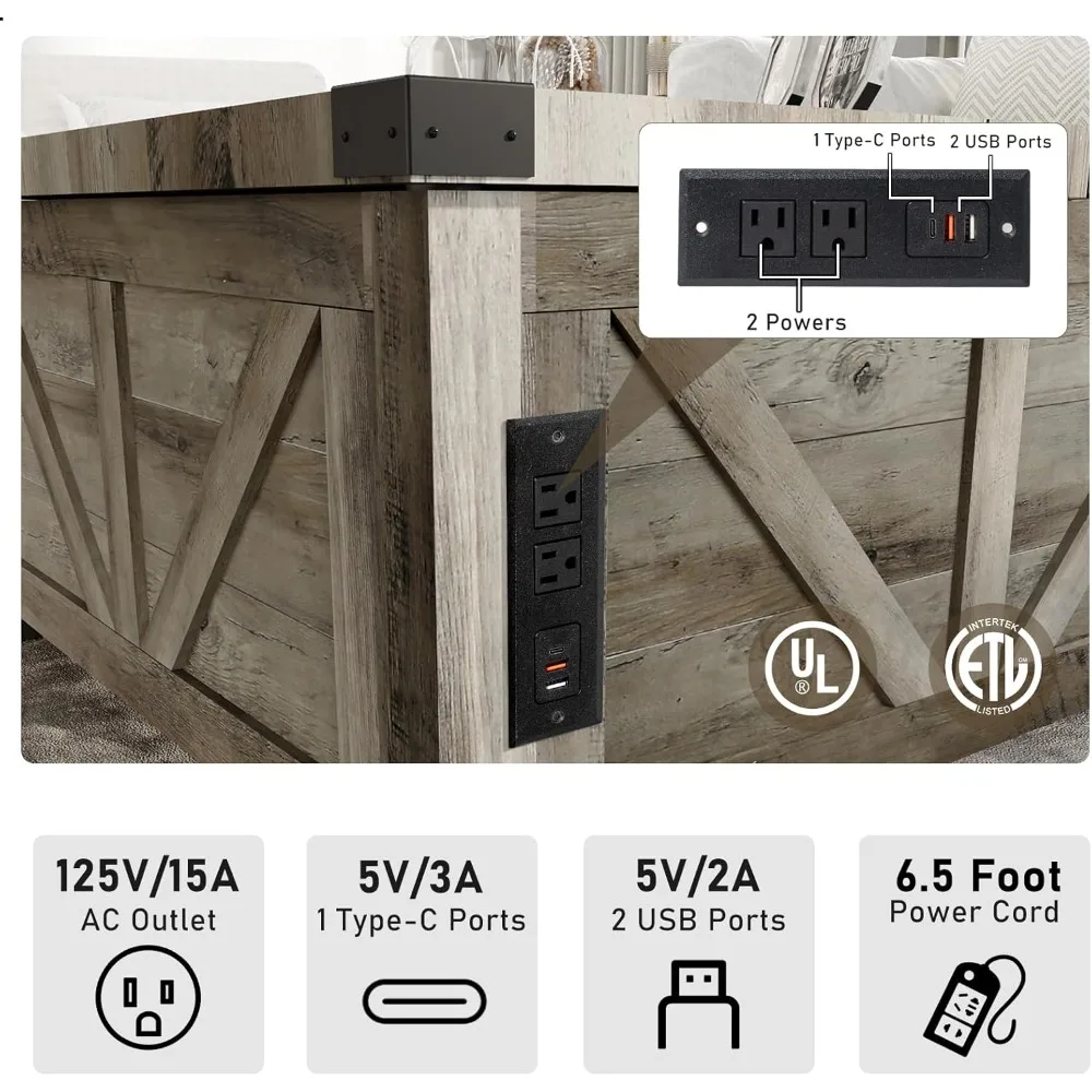 Farmhouse Lift-Top Coffee Table w/ Storage & USB Charging Station