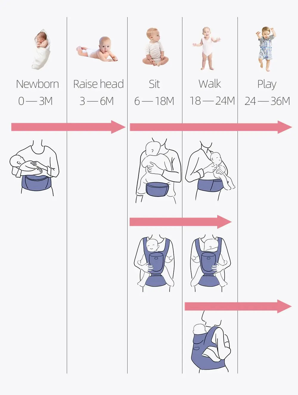 HIPSEAT, BACK CARRIER, BREAST-FEEDING CARRIER 3 IN 1: SUNVENO hip seat baby carrier ergonomic allows 3 mode 5 positions to carry baby, front-outward with sling, face with sling, face only hipseat, breat-feeding position and front-outward hipseat, you can find a way best that meets both baby's or your needs as baby grows up