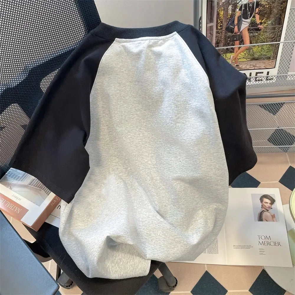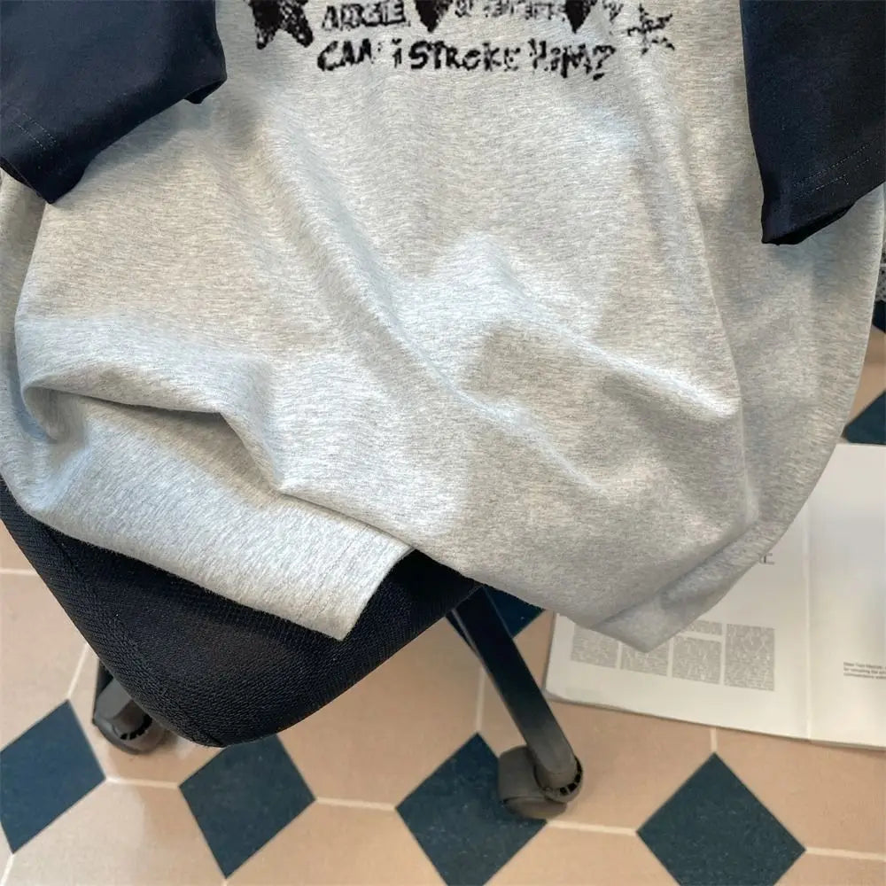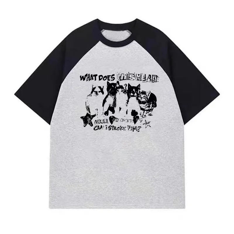 Patchwork Oversized Women T Shirt, Cat Print, Short Sleeve