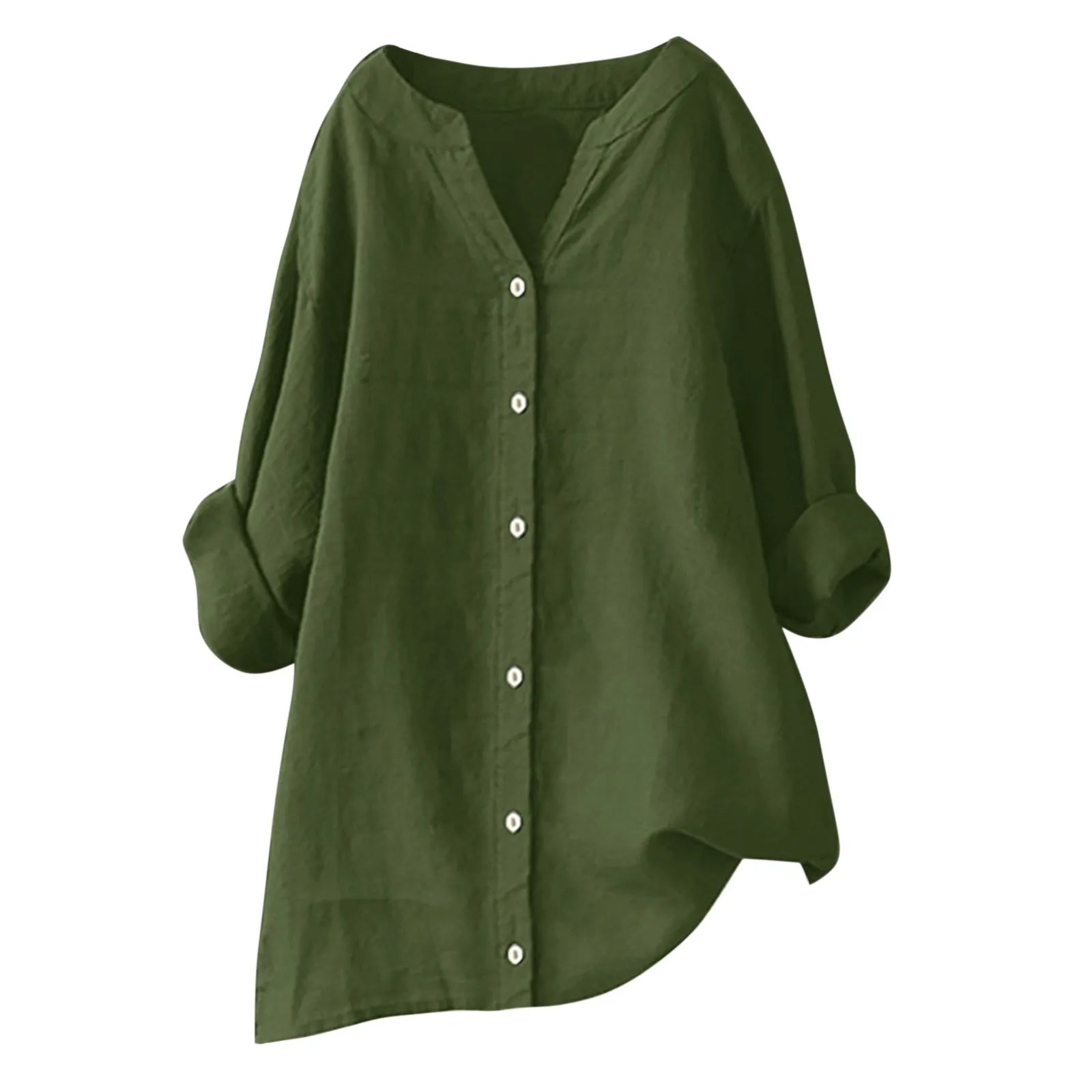 Plus Size Cotton Linen Shirt, Long Sleeve, Oversized, Button Up