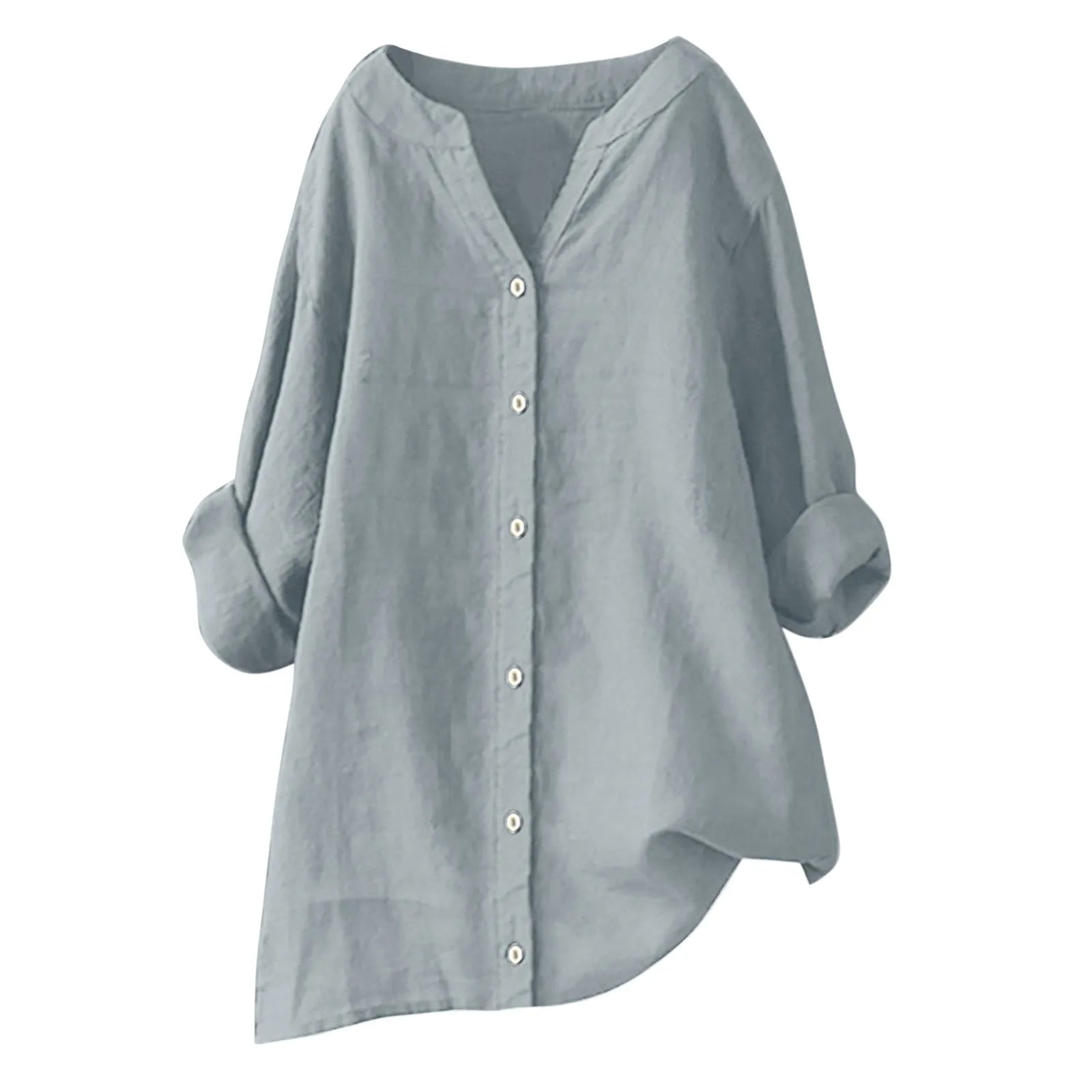Womens Loose Buttons Down Blouse Tops Solid Casual Long Sleeve Shirt Blouse