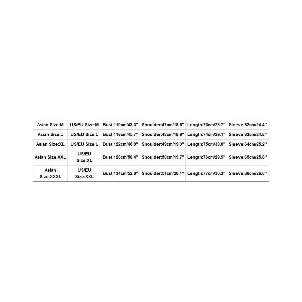 | Asian Size | US/EU Size | Bust | Shoulder | Length | Sleeve |