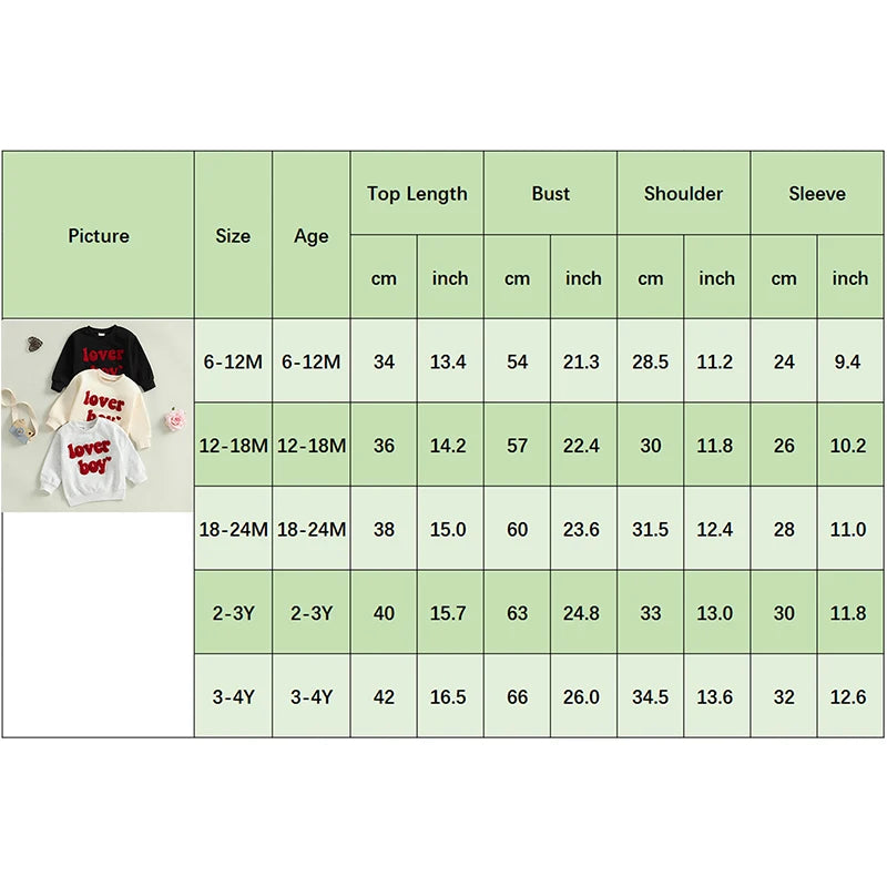 Toddler/Baby Boys Valentine's Day Sweatshirts, Long Sleeve, Crew Neck, Letter Embroidery