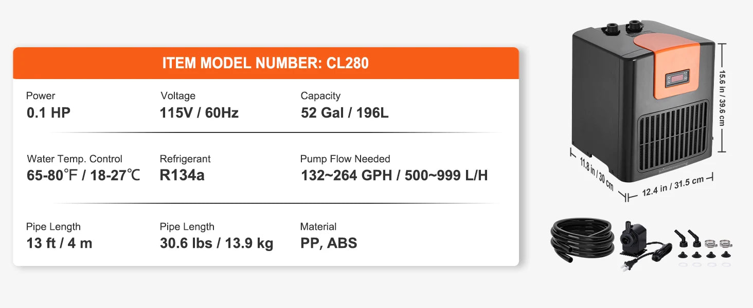 Stable Water Temperature: An aquarium chiller is like an air conditioner for fish tanks. It's an important piece of equipment for fish keepers, and our 92 Gal / 348 L cooler is essential for regulating water temperature. It can keep the temperature between 65℉-80℉, creating a healthy environment for your fish, especially during the hot summer months.