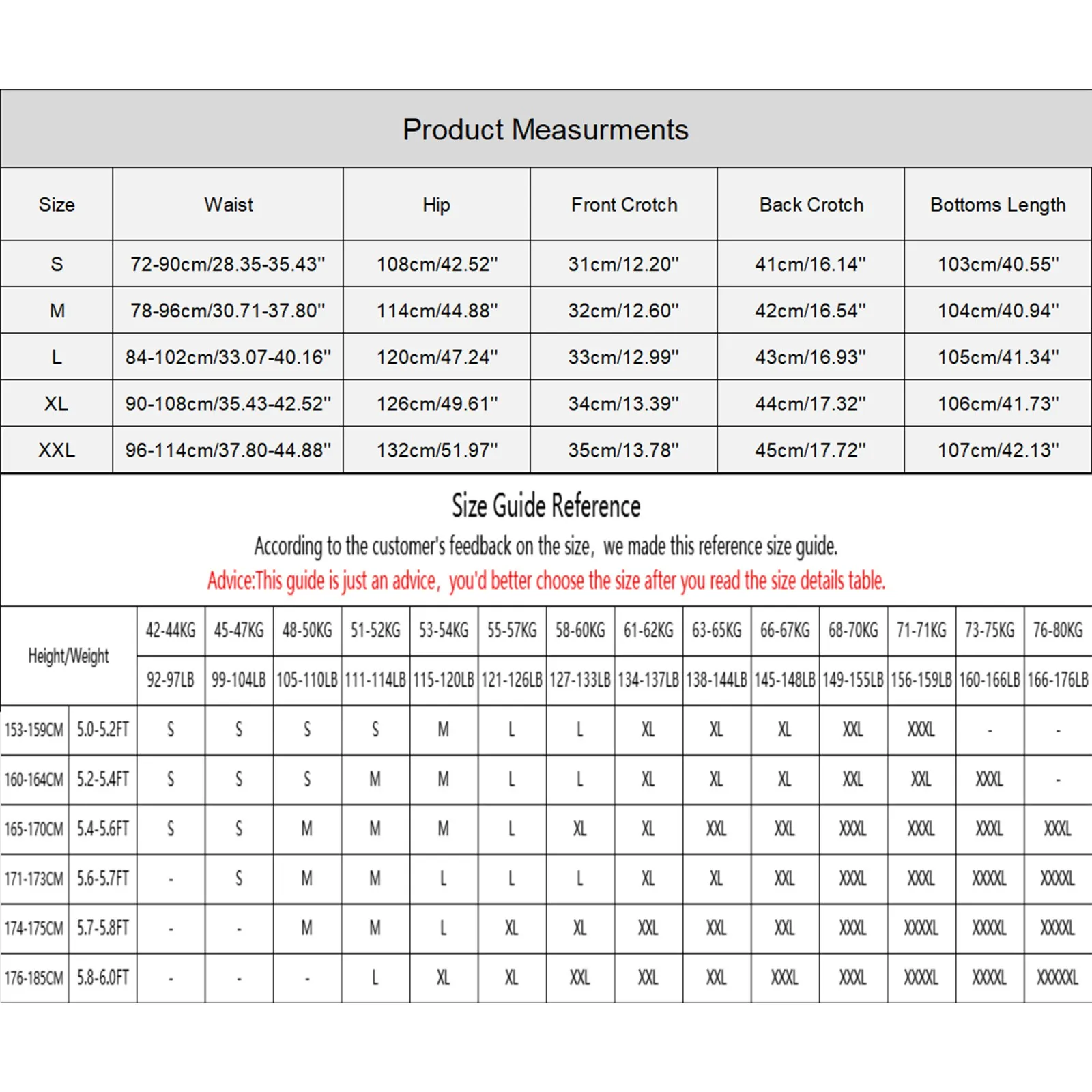 Back Crotch:45cm/17.72'' |
